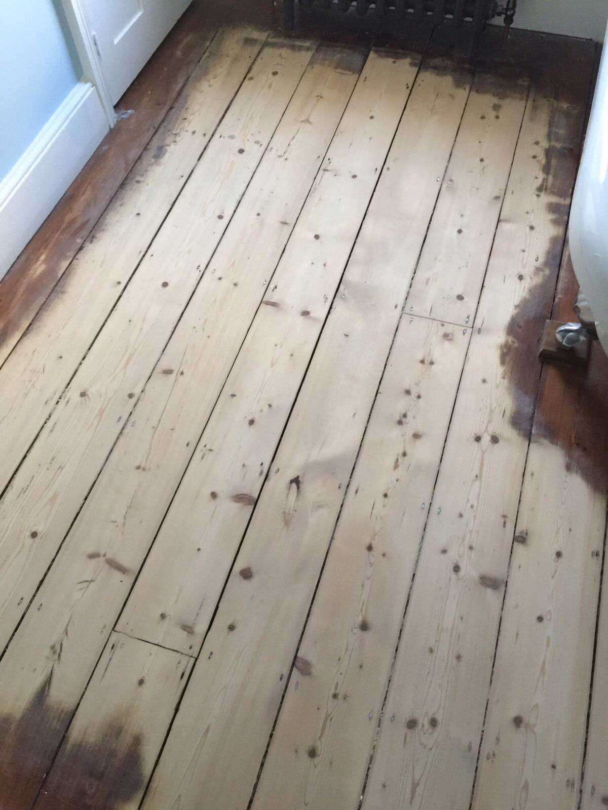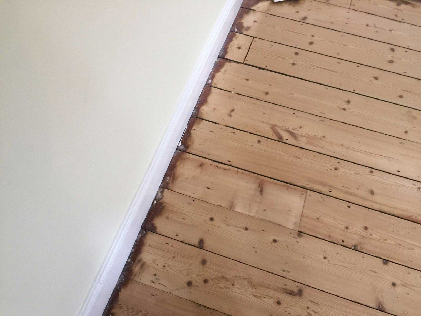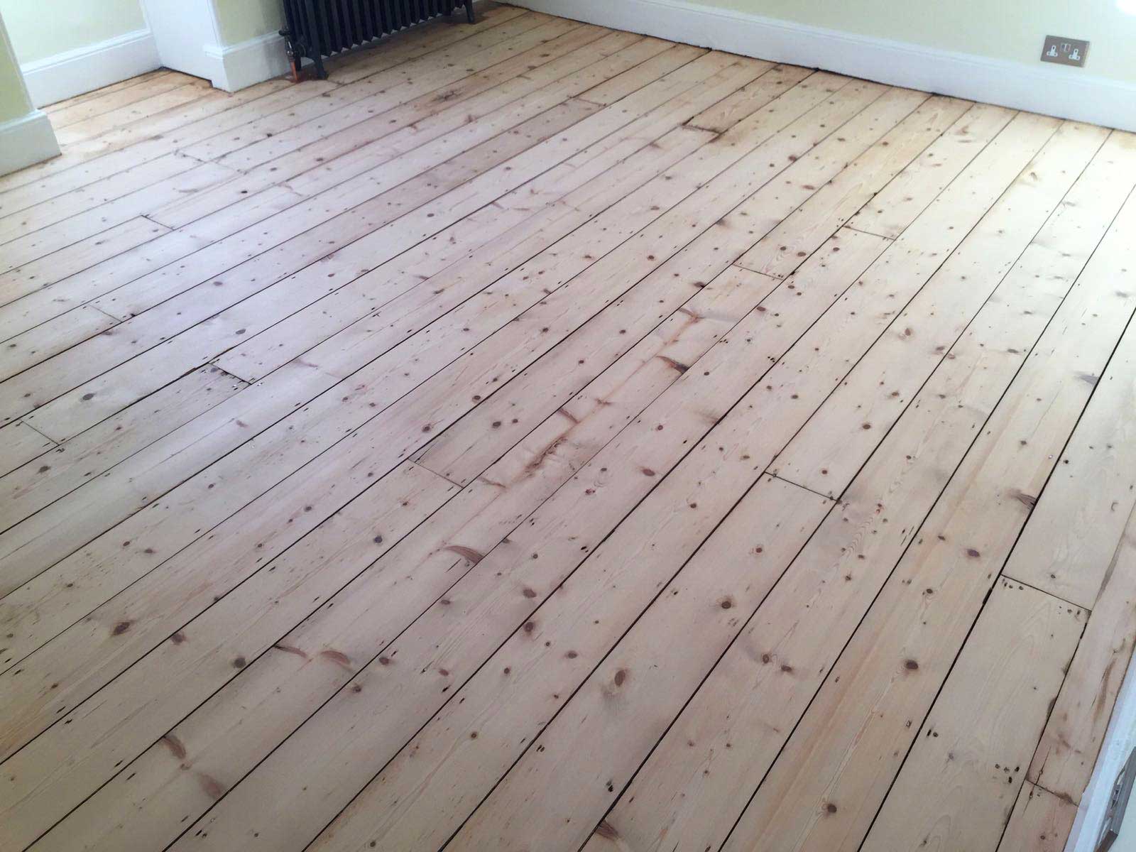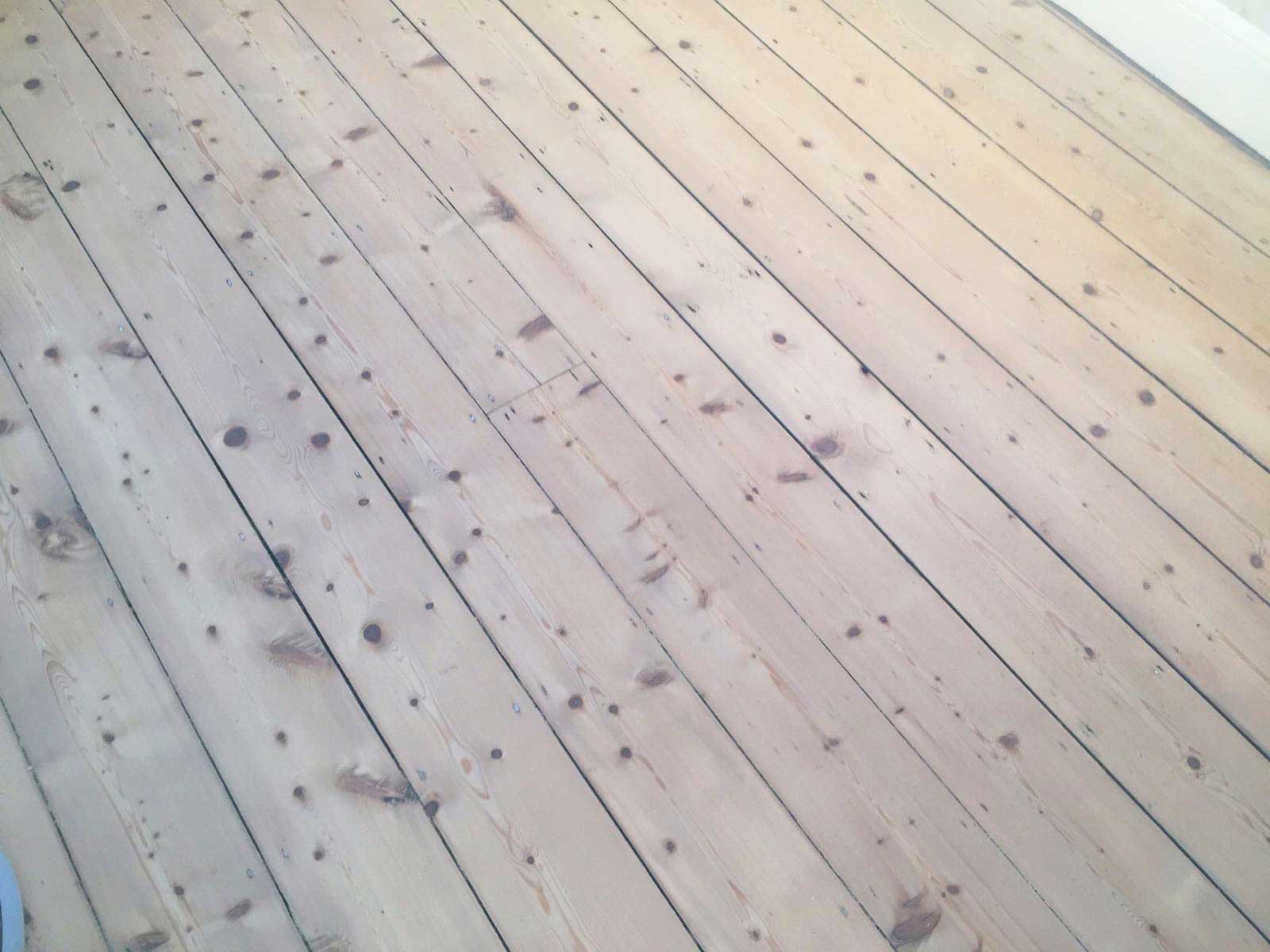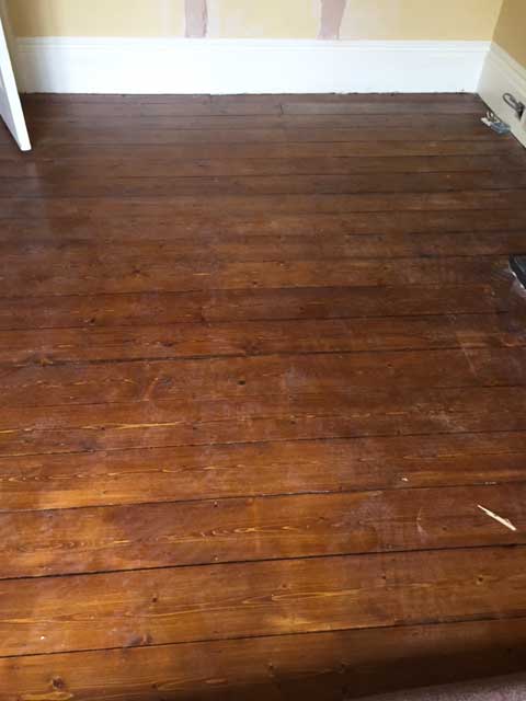 This is the condition of the wooden floor boards before restoration commenced. Some areas looked worn and had scuff marks and there were visible gaps between some of the floor boards.