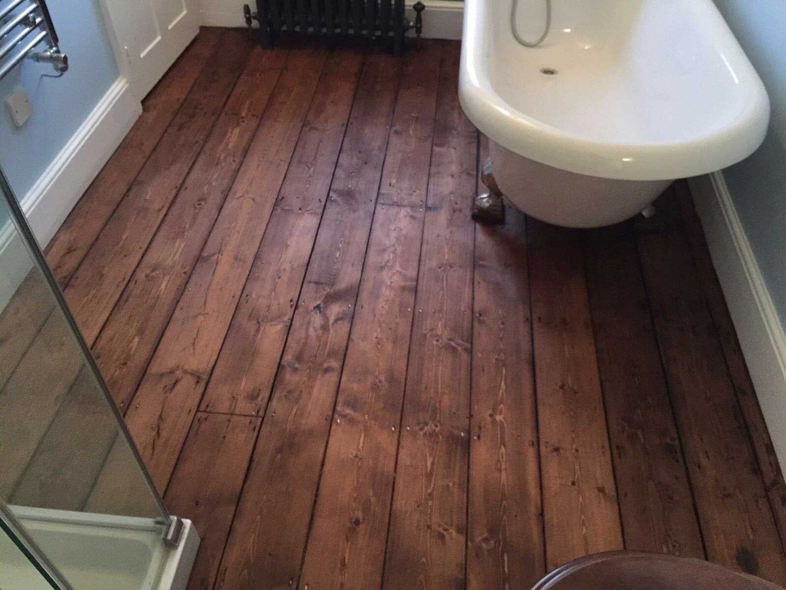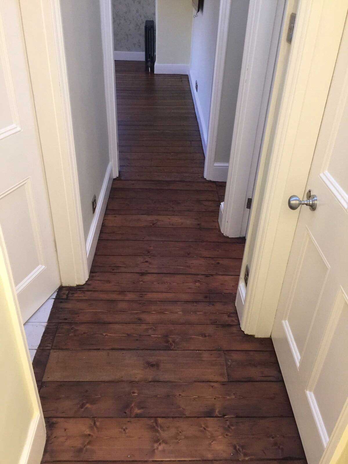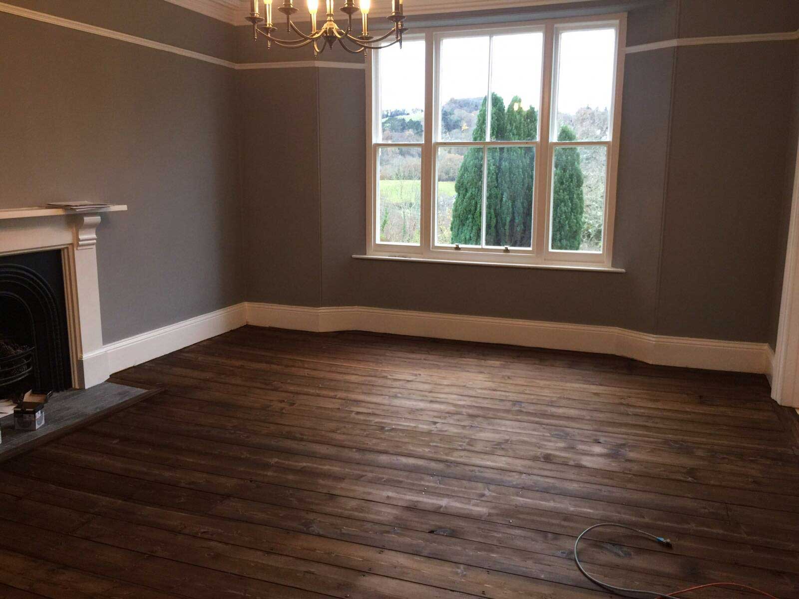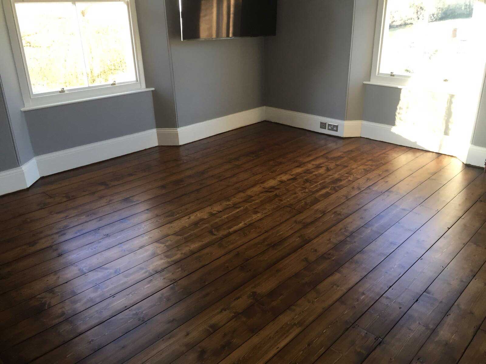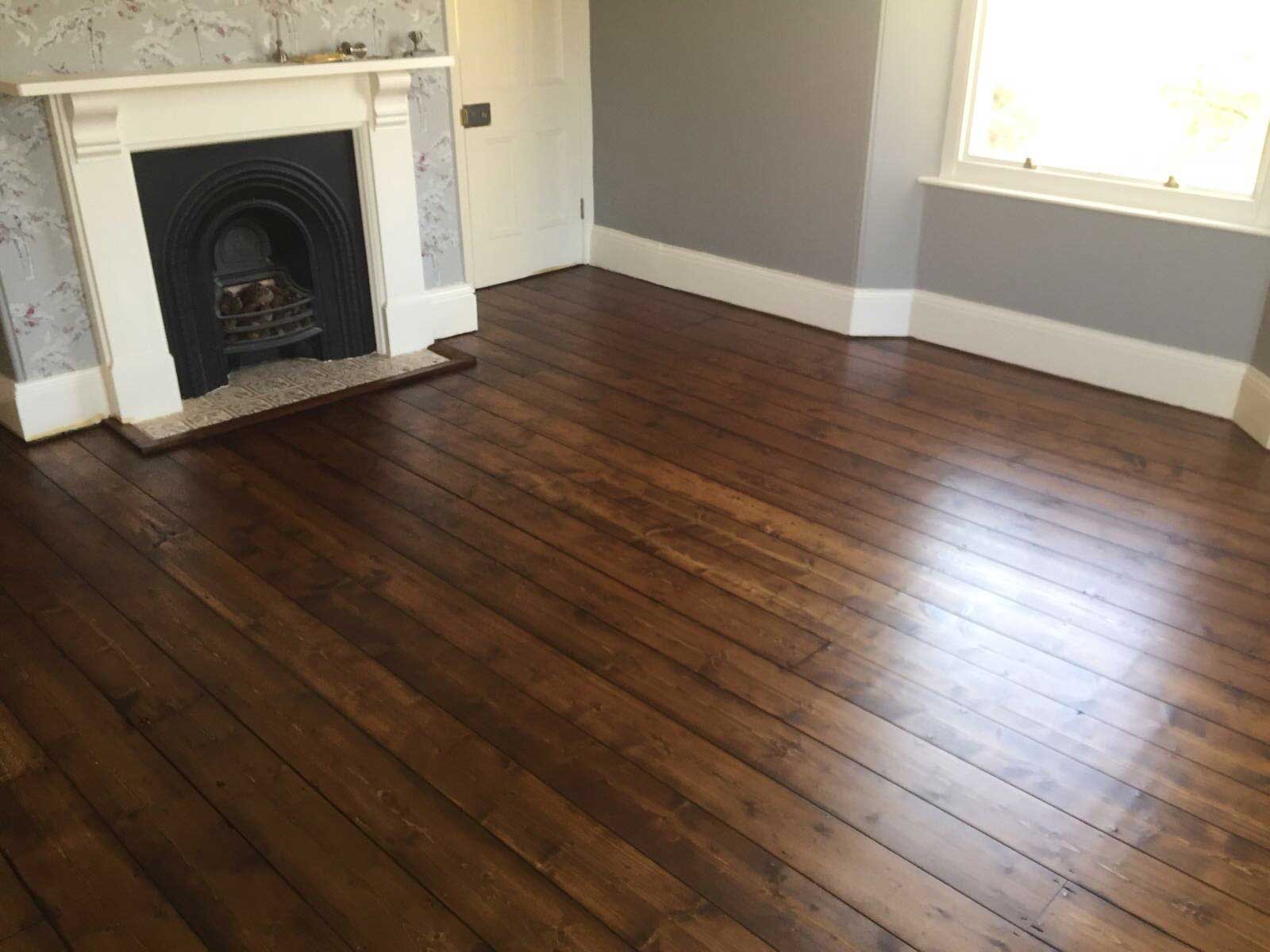 Once the wood floors had been sanded they are then stained with a Dark Oak Staining.